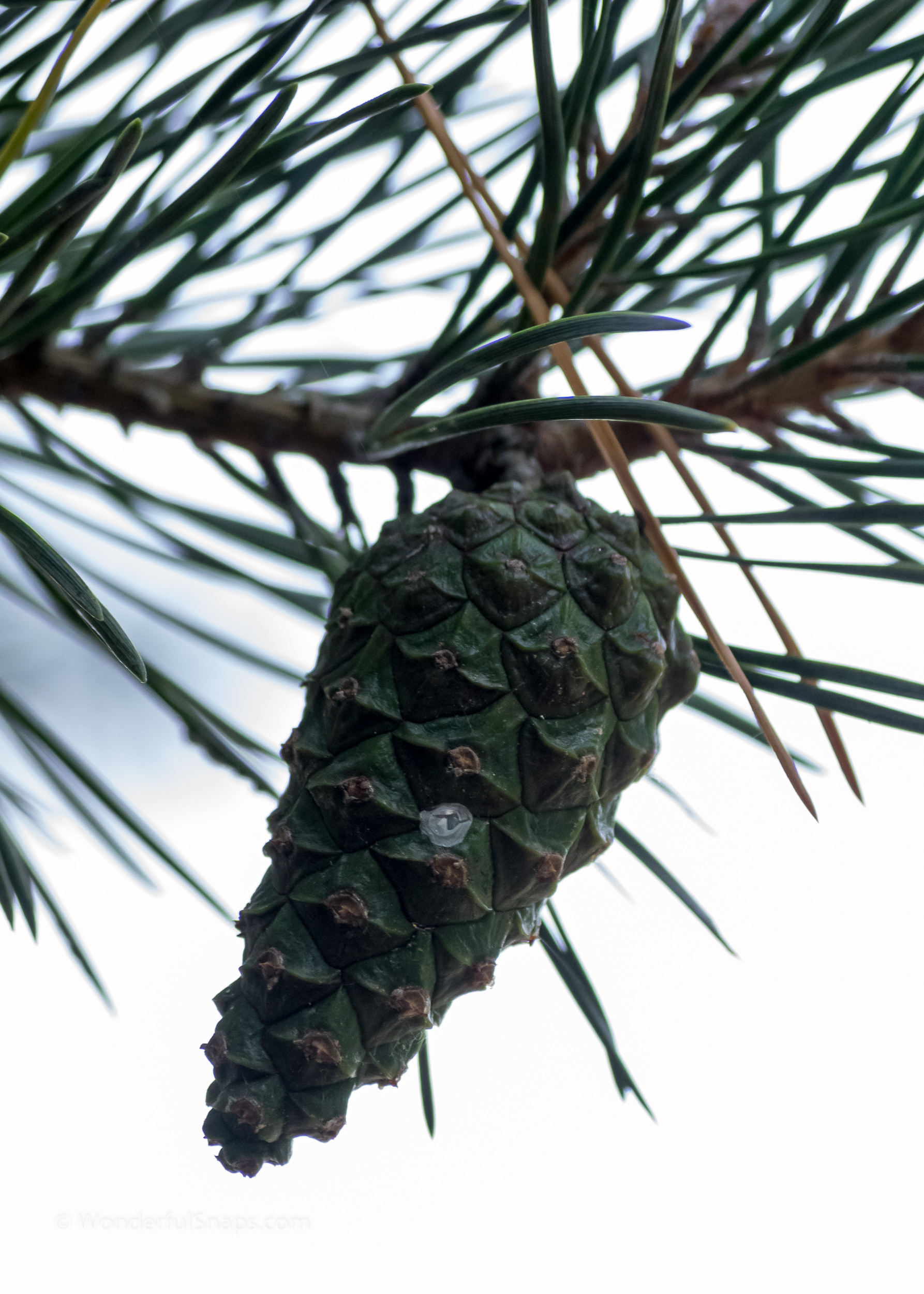 On this particular occasion, my focus was drawn to the graceful cones dangling delicately from nearby branches. The sight of these dry cones, suspended like nature's ornaments, stirred a sense of inspiration within me. The simplicity of their form and the interplay of light and shadow became a compelling subject for my lens.