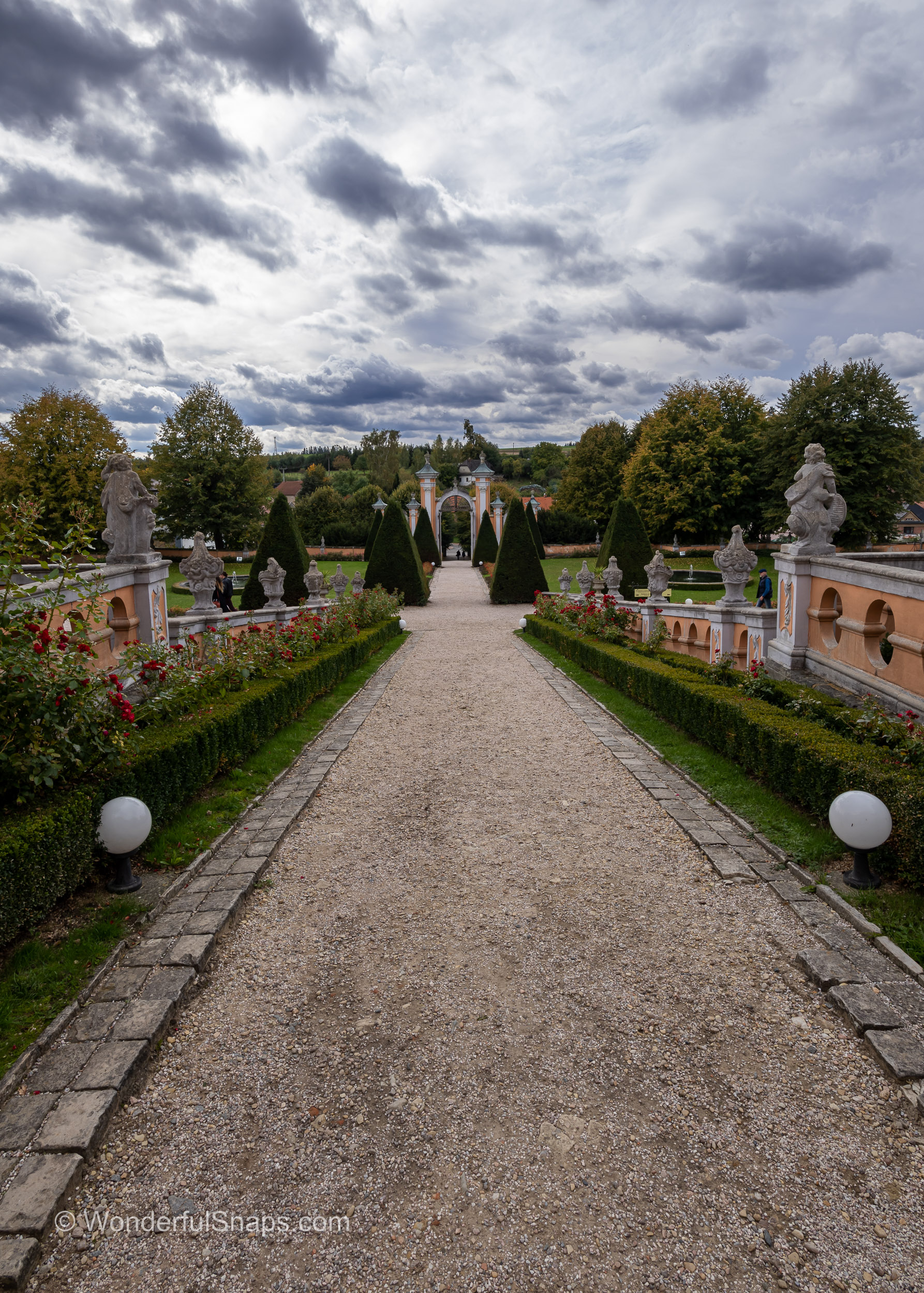 The author had high expectations for this castle, having read that it was supposed to remind visitors of the grandeur of the Austrian Schönbrunn. However, upon arrival, they quickly realized that Nove Hrady was much smaller than they had anticipated. While the castle's architecture and shapes may have a remote resemblance to Schönbrunn, the comparison ends there.