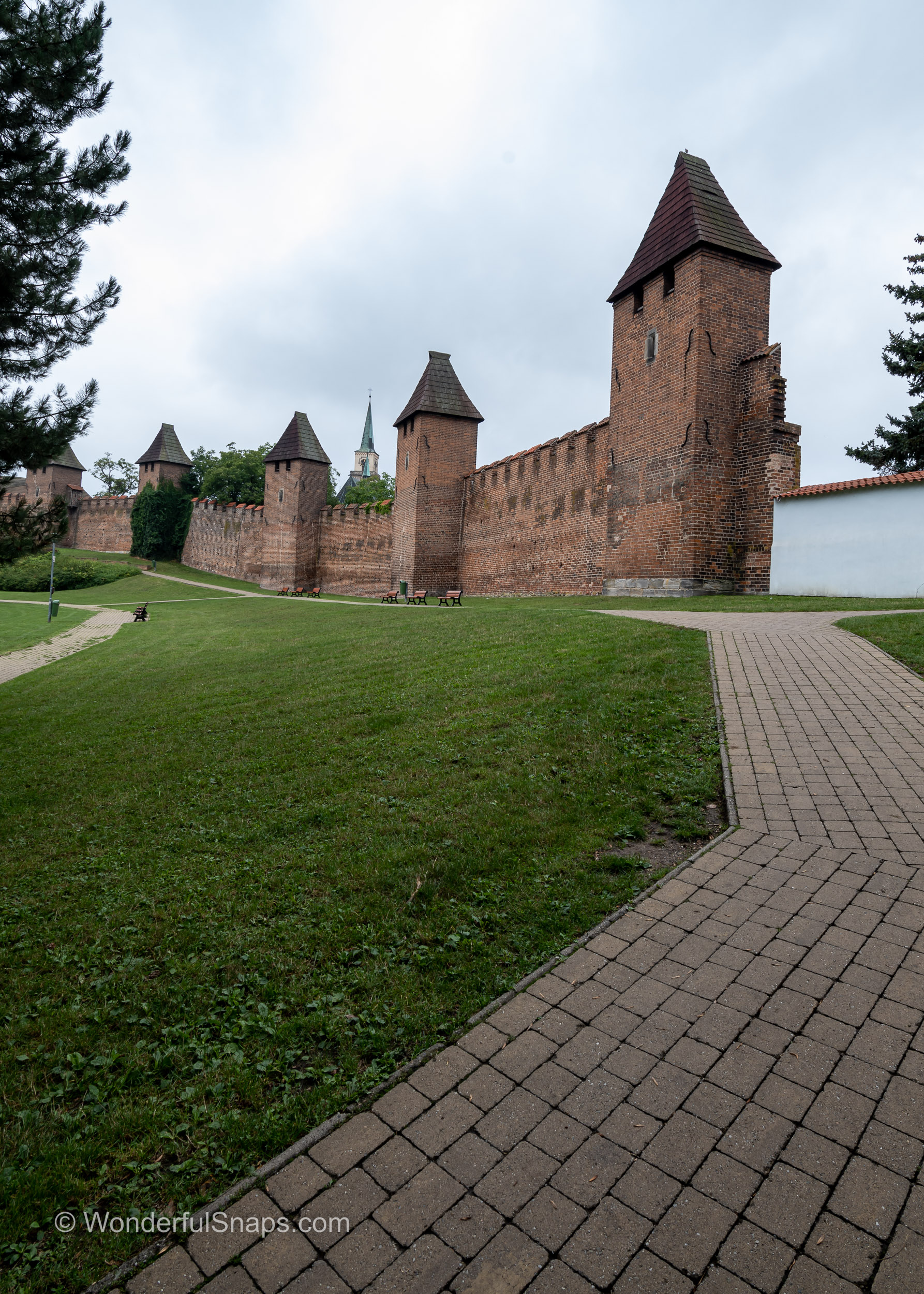 For now, the author contented themselves with exploring the city's other historical landmarks, including a nearby church and the remaining portions of the city's stone walls. Despite the less-than-ideal weather, the author was glad that they had taken a chance and visited Nymburk to see its famous stone bridge and other sites.