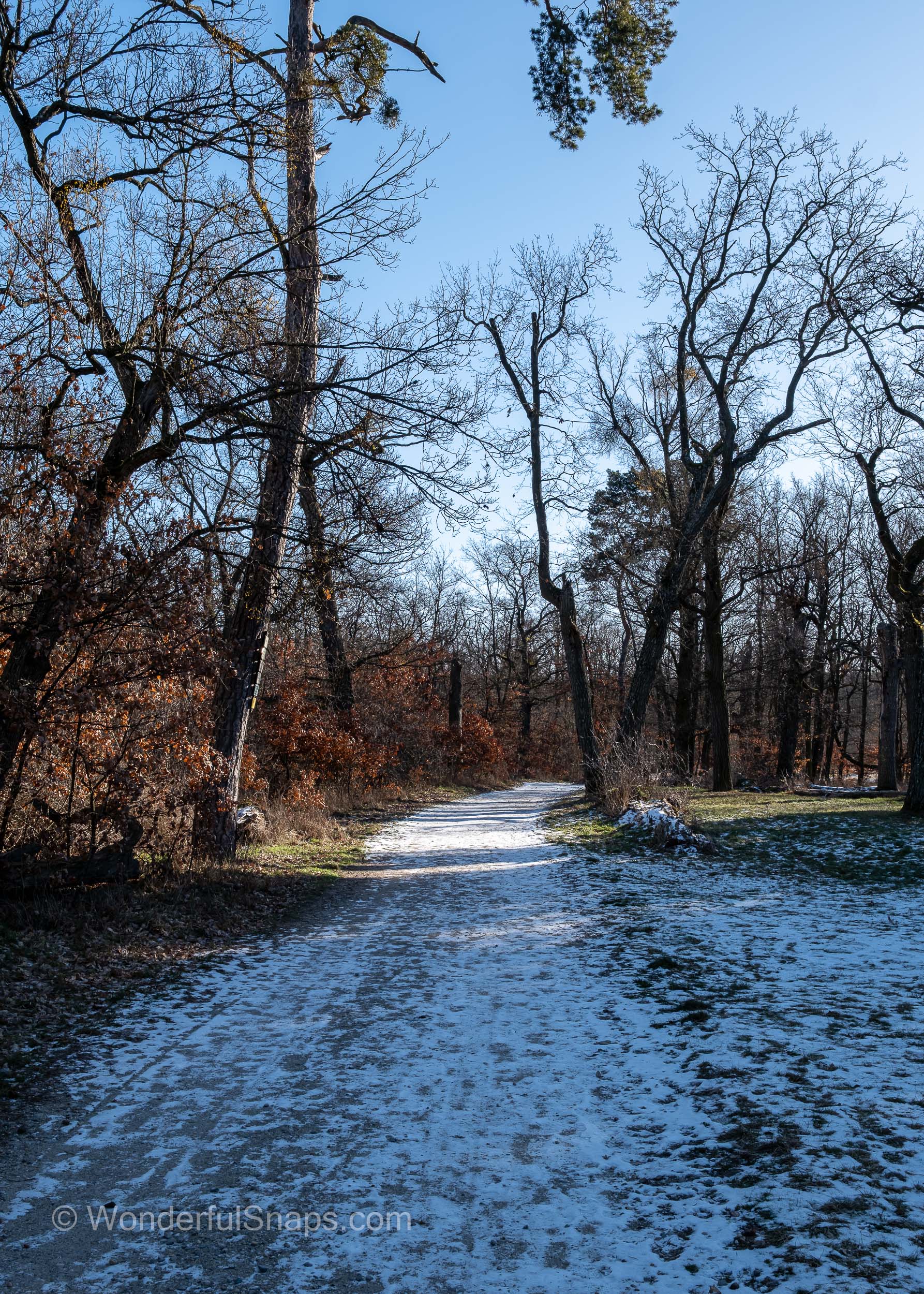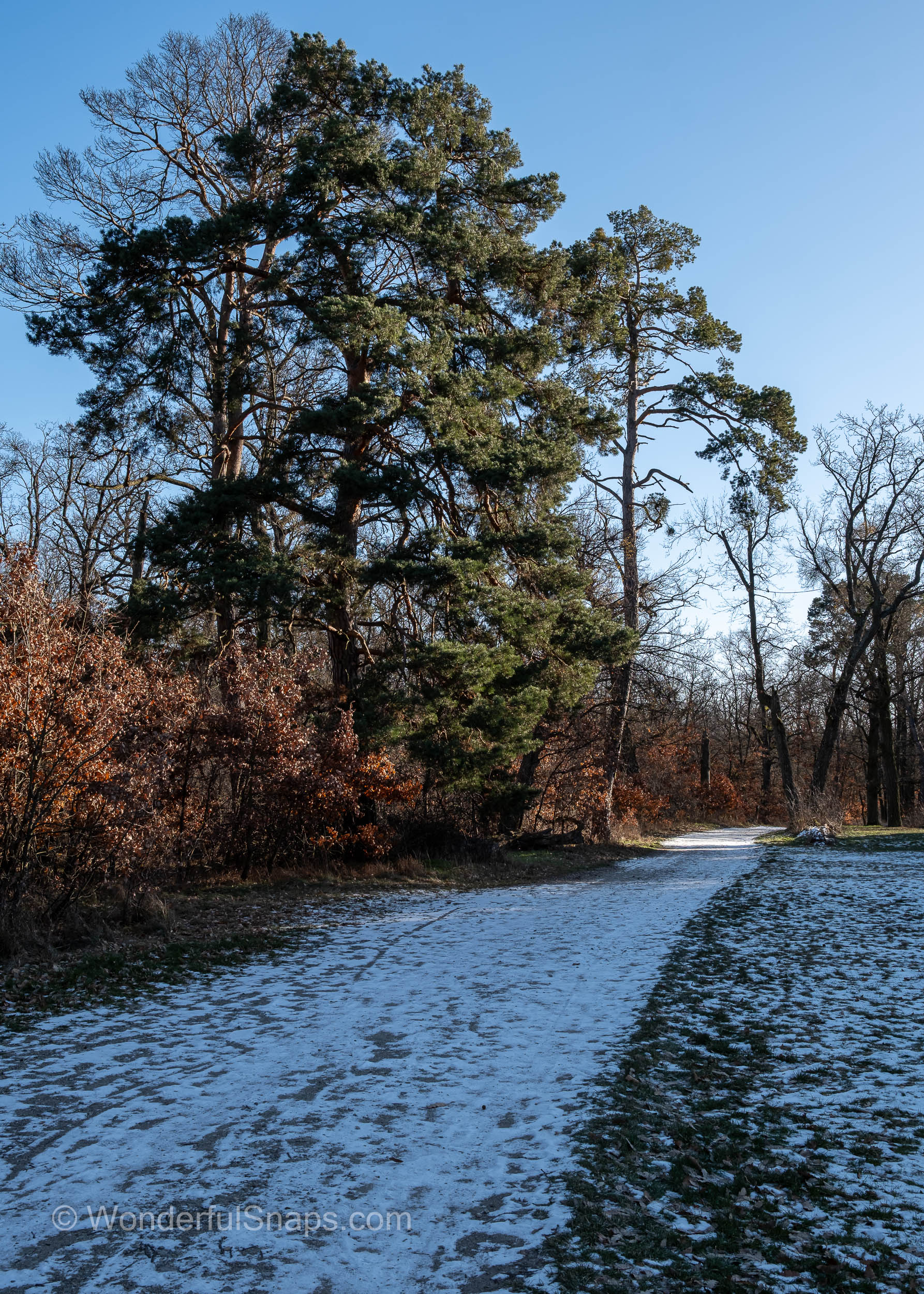 The absence of people enhances the atmosphere. There is a sense of pause, as if time itself has slowed. Winter reveals the underlying structure of the landscape – its geometry, textures and history – without the noise of colour and movement found in warmer months. Light becomes the main storyteller, shaping reliefs, trunks and paths with precision.